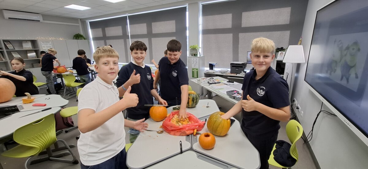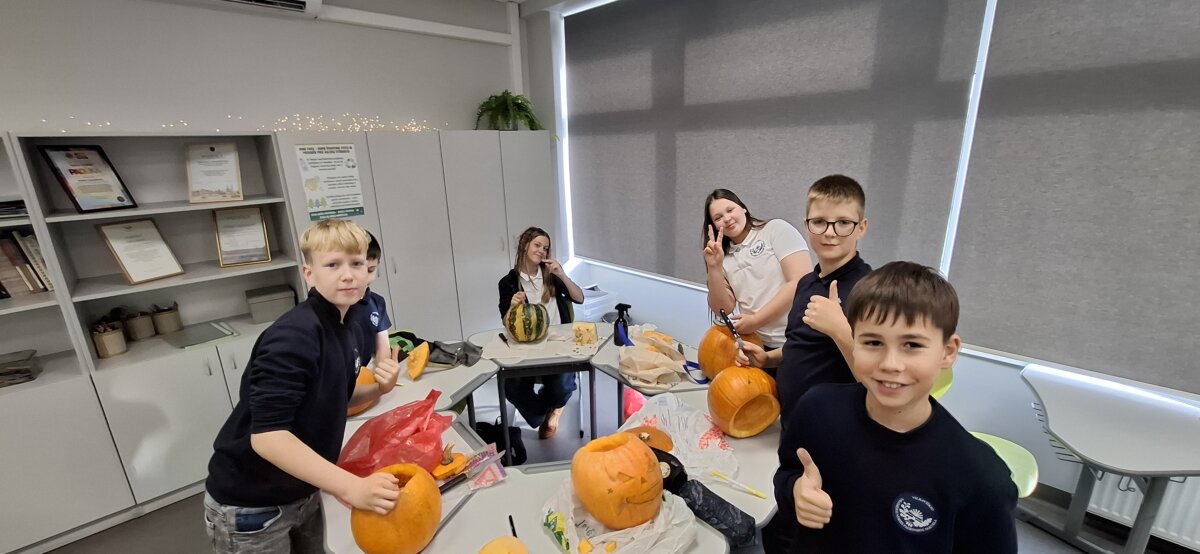 Šiandien išskobtas moliūgas su viduje degančia žvake tapo šviesos, jaukumo ir smagaus žaidimo ženklu. Tokius simbolinius žibintus klasės valandėlės metu kūrė ir 5a klasės mokiniai. Tegul jų švieselės ne tik atbaido piktąsias dvasias, bet ir dovanoja mūsų mokyklos bendruomenei gerą nuotaiką, kūrybiškumą bei daug šiltų, linksmų akimirkų.