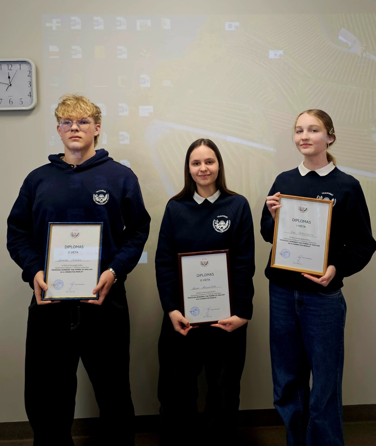 Kovo 26 dieną Salomėjos Nėries pagrindinėje mokykloje vyko Vilkaviškio r. bendrojo ugdymo mokyklų 7-8 klasių mokinių anglų kalbos konkursas "Bridging Borders- The Power Of English In A Connected World". Konkurse dalyvavo 23 mokiniai iš 9 rajono mokyklų. Mūsų mokyklą atstovavo Eva Meškauskaitė (7c kl.), Liudvikas Mažeika (8c kl.) ir Rusnė Karpavičiūtė (8c kl.). Visi trys dalyviai parodė puikius anglų kalbos gebėjimus ir užėmė prizines vietas.