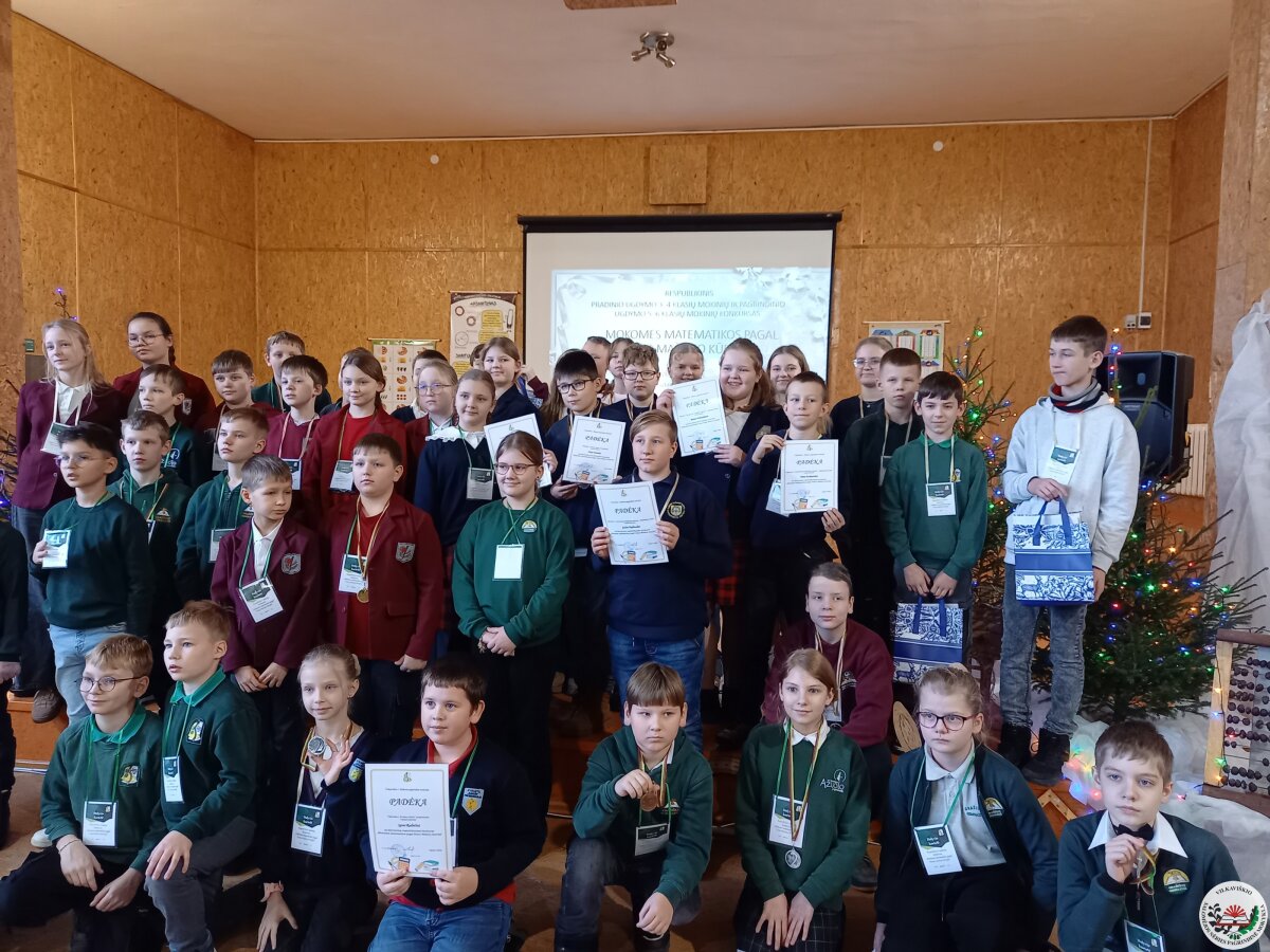 Gruodžio mėnesio 16 dieną Sūdavos pagrindinėje mokykloje vyko respublikinis tekstinių uždavinių sprendimo konkursas 3-4 klasių ir 5-6 klasių mokiniams „Mokomės matematiką pagal Prano Mašioto kūrybą“. Dalyvavo Vilkaviškio, Marijampolės ir Šakių moksleiviai. Mūsų mokyklai atstovavo šeštokės Amelija Rinkevičiūtė ir Paula Grygelaitytė bei penktokai Dominyka Klimaitė ir Joviltas Aušrota. Joviltas penktų klasių grupėje, o Amelija šeštų klasių grupėje užėmė I vietą. Buvo apdovanoti medaliais. Visi dalyviai gavo padėkos raštus ir dovanėles. Džiaugiamės ir didžiuojamės mokiniais ir jų pasiekimais.