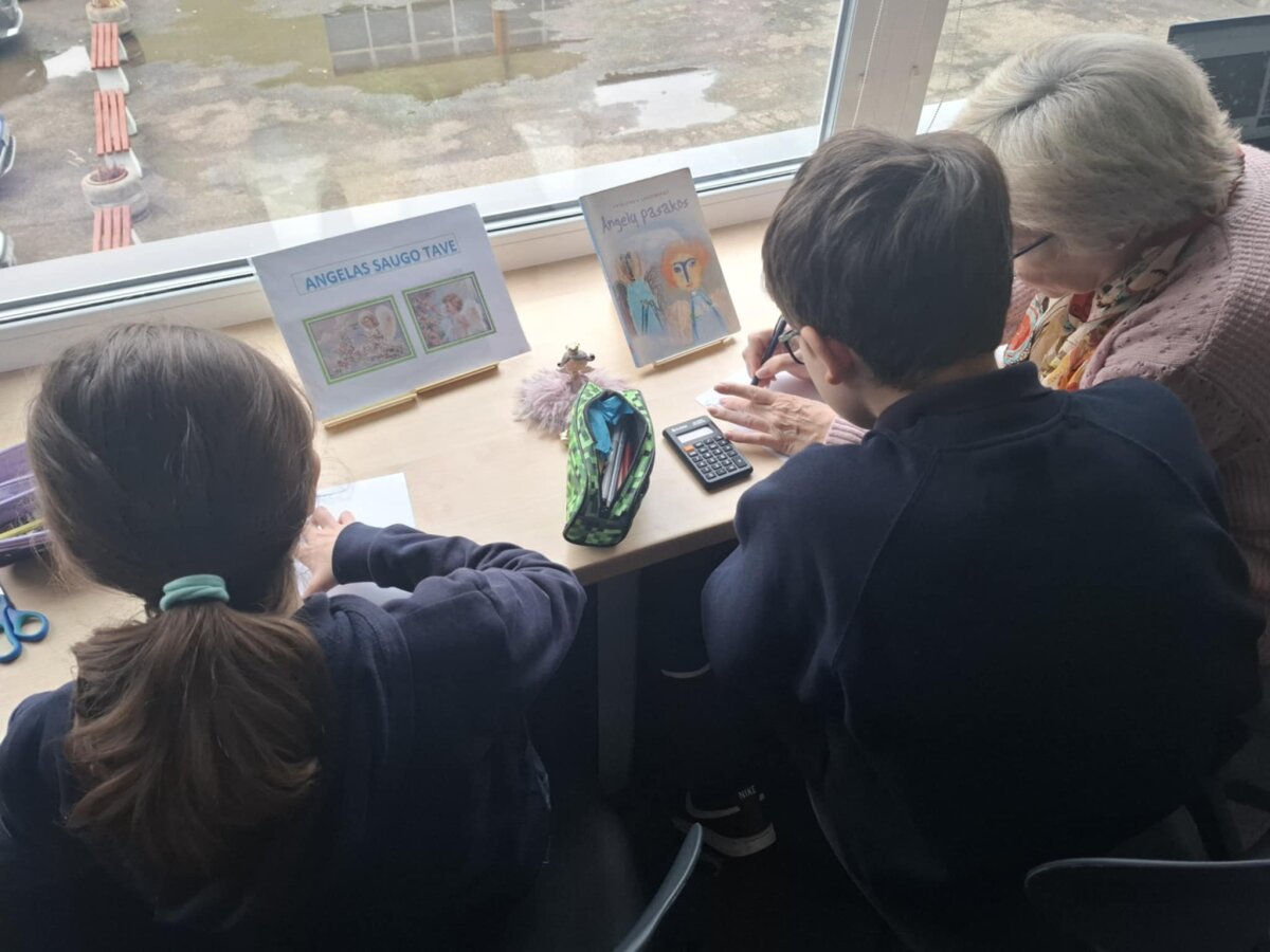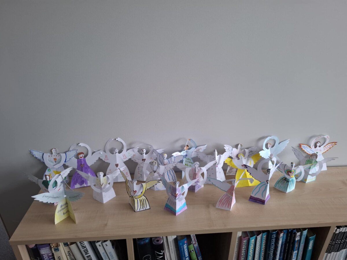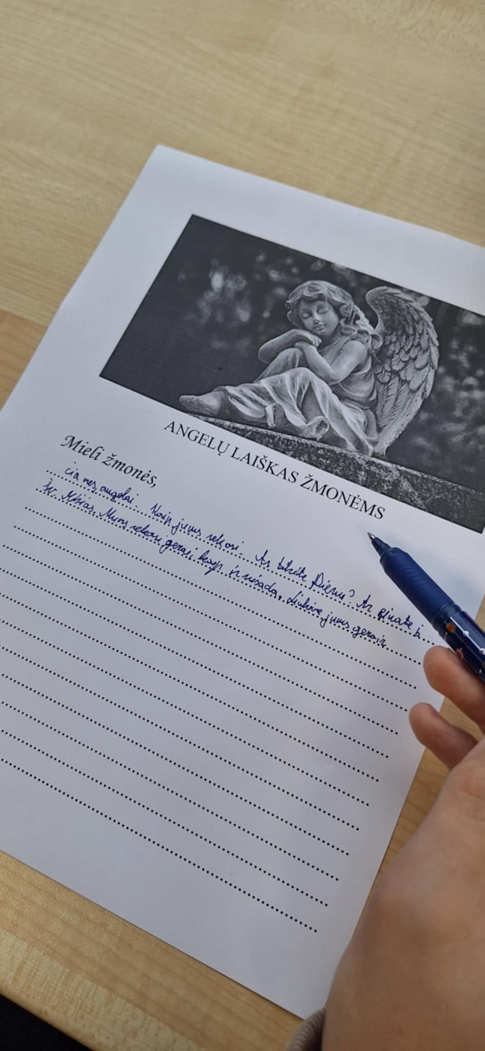 Dirbtuvių metu mokiniai klausydamiesi Vilkaviškio viešosios bibliotekos vyresniosios bibliotekininkės Alvinos Radžvilienės pasakojimo sužinojo apie populiariausius angelus, kaip angelai vaizduojami mitologijoje, tautosakoje, rašytojų kūryboje, menininkų darbuose. Praktinių veiklų metu dirbtuvių dalyviai pasigamino savo Angelą sargą, kuriam patikėjo slapčiausias svajones. Mokiniai taip pat kūrė dialogą su angelu, rašė angelų laišką žmonėms.