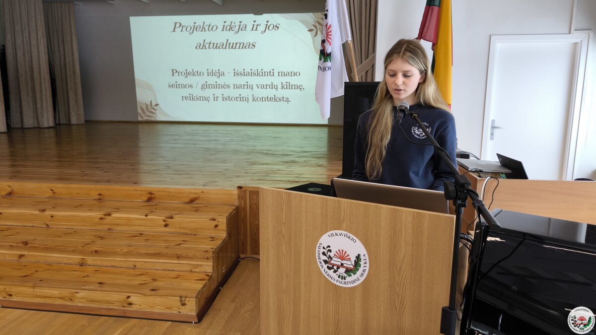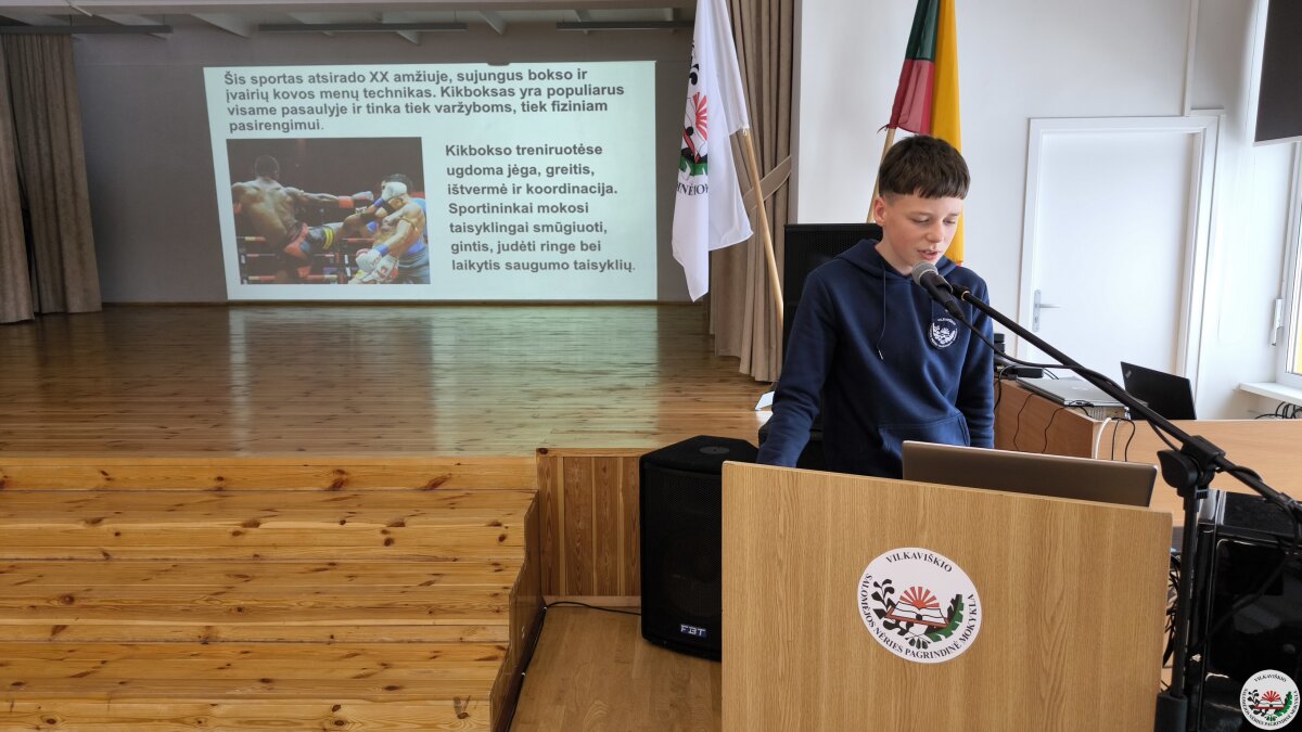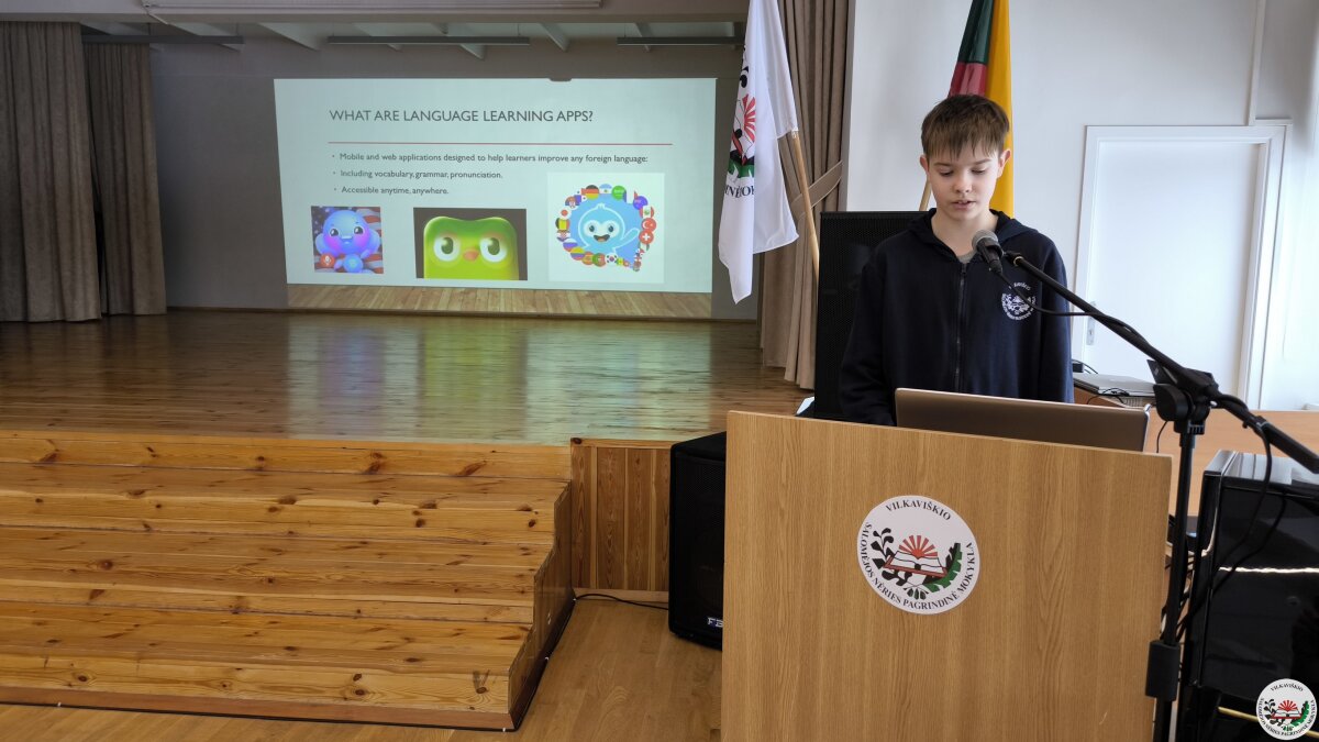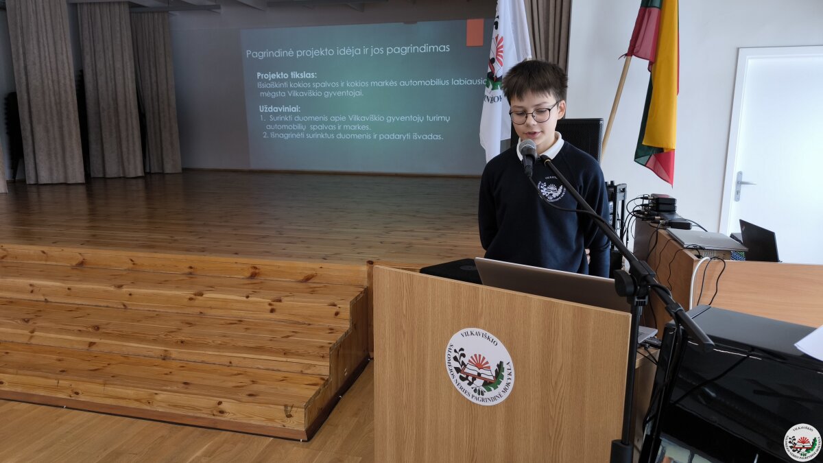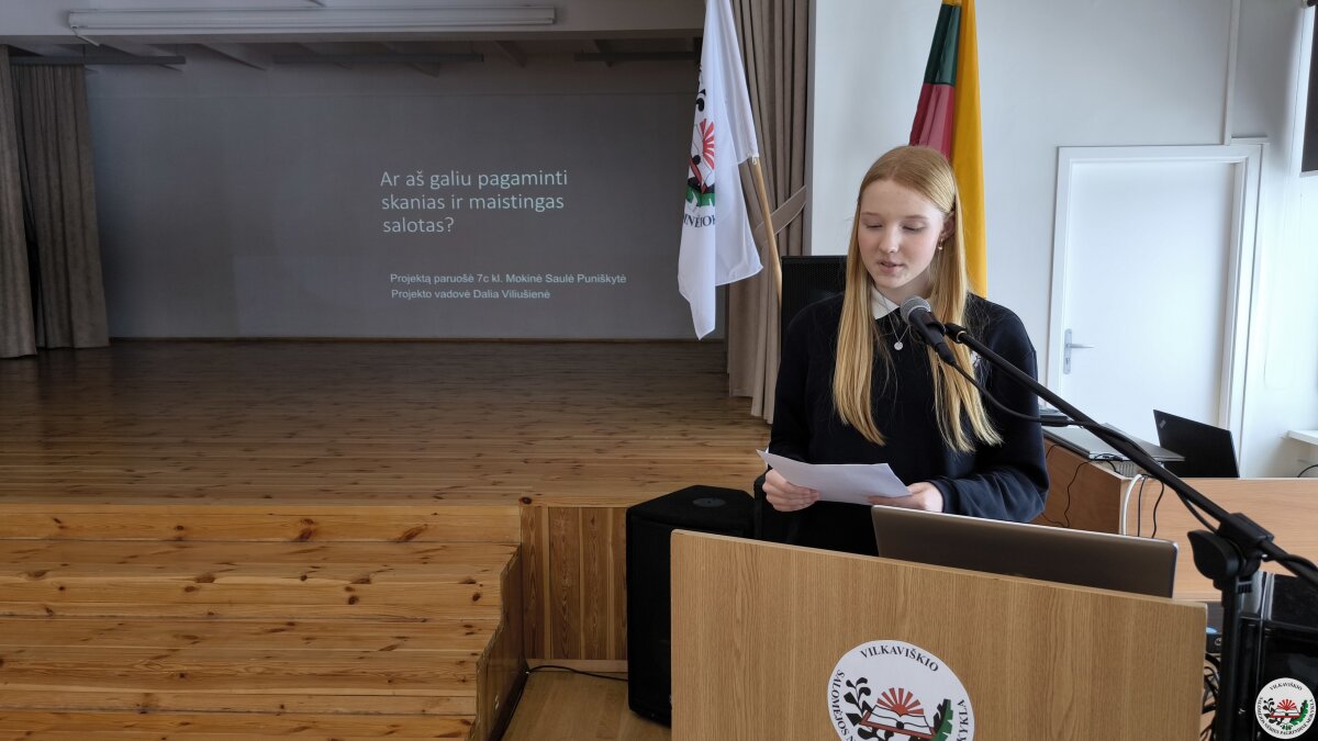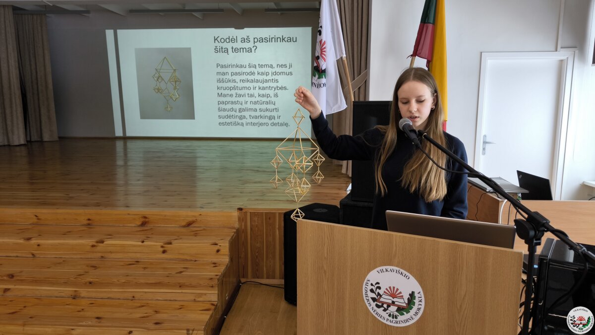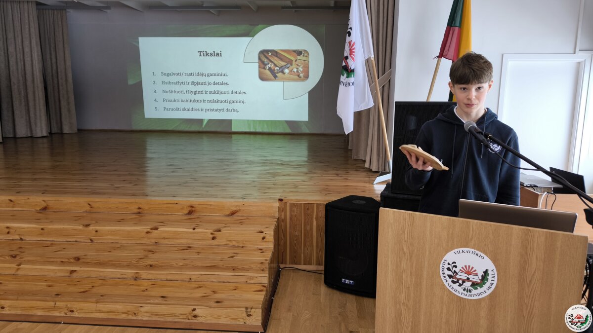 Geriausių projektų autoriai savo darbus pristatė mokyklos bendruomenei. Pristatymų metu mokiniai ne tik dalijosi įgytomis žiniomis ir patirtimi, bet ir stiprino viešojo kalbėjimo įgūdžius.