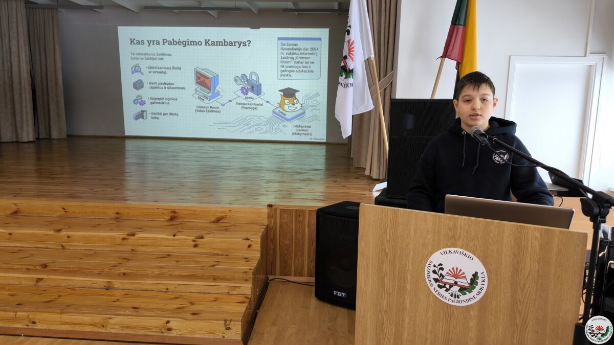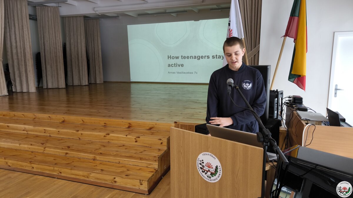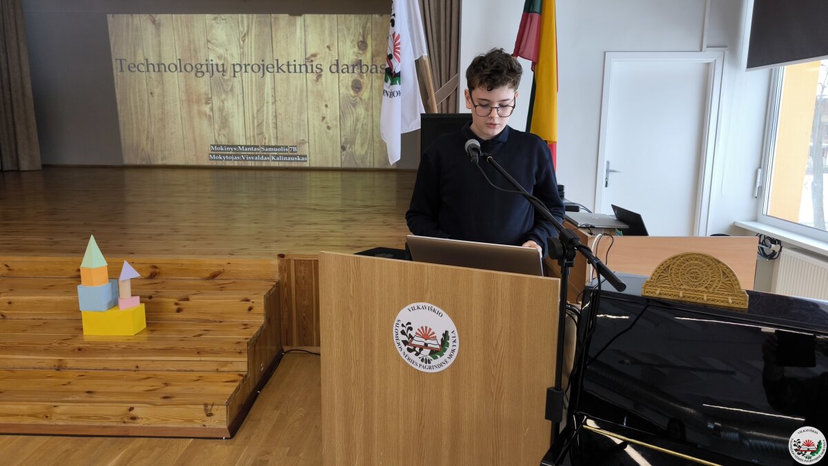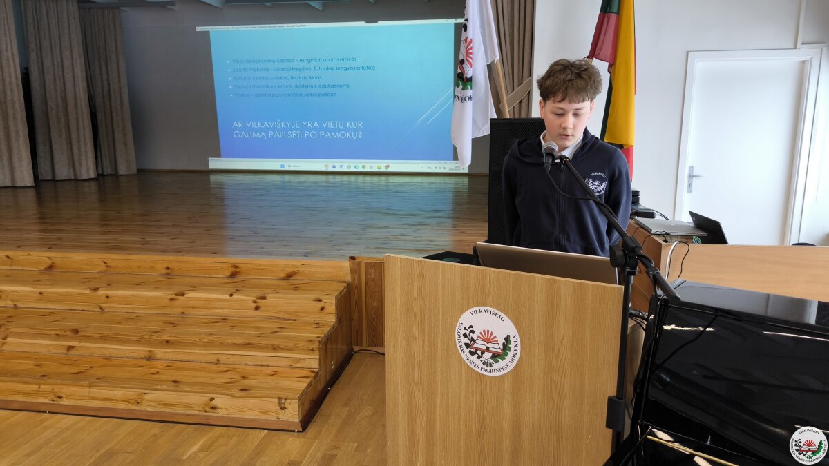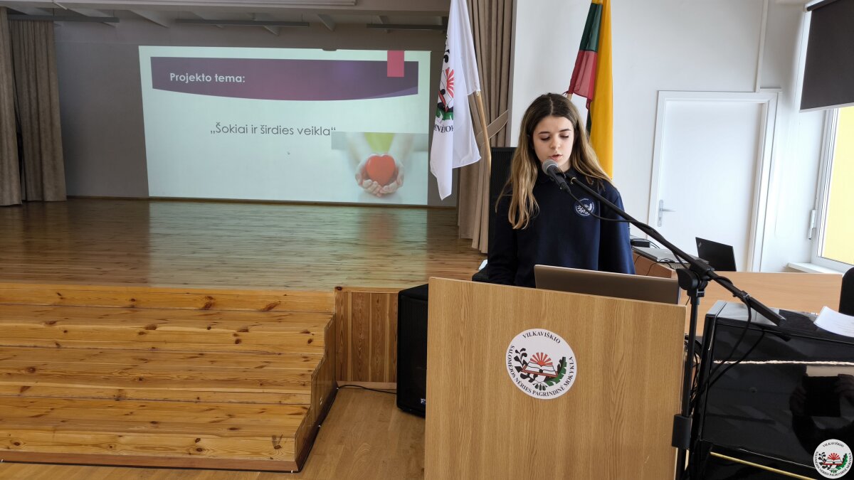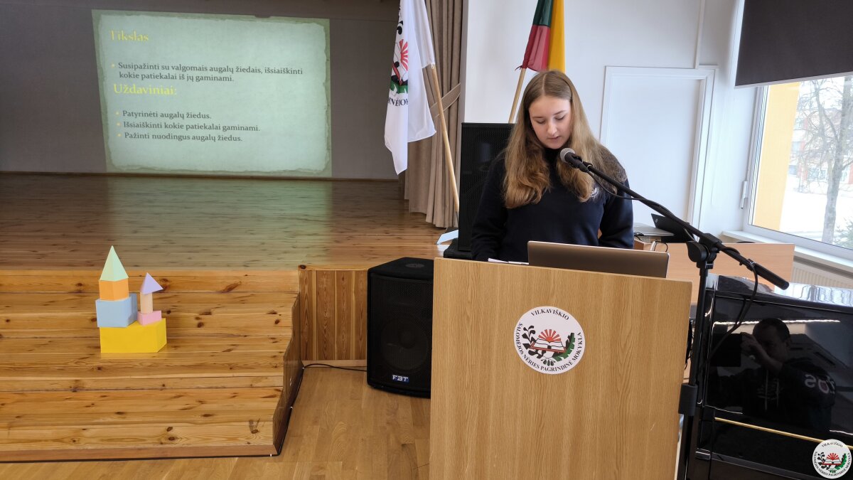 Geriausių projektų autoriai savo darbus pristatė mokyklos bendruomenei. Pristatymų metu mokiniai ne tik dalijosi įgytomis žiniomis ir patirtimi, bet ir stiprino viešojo kalbėjimo įgūdžius.