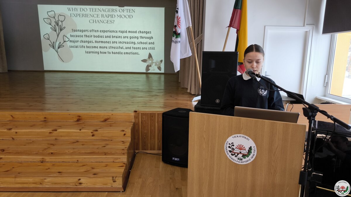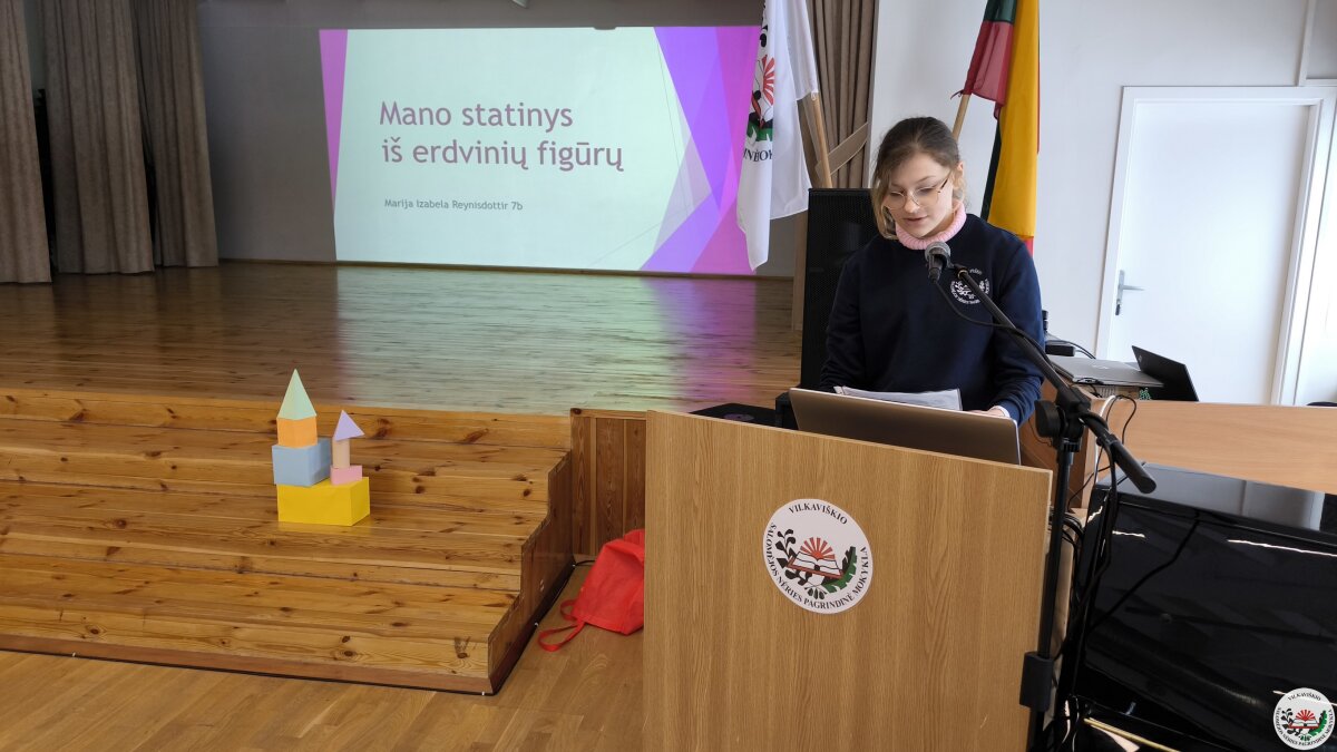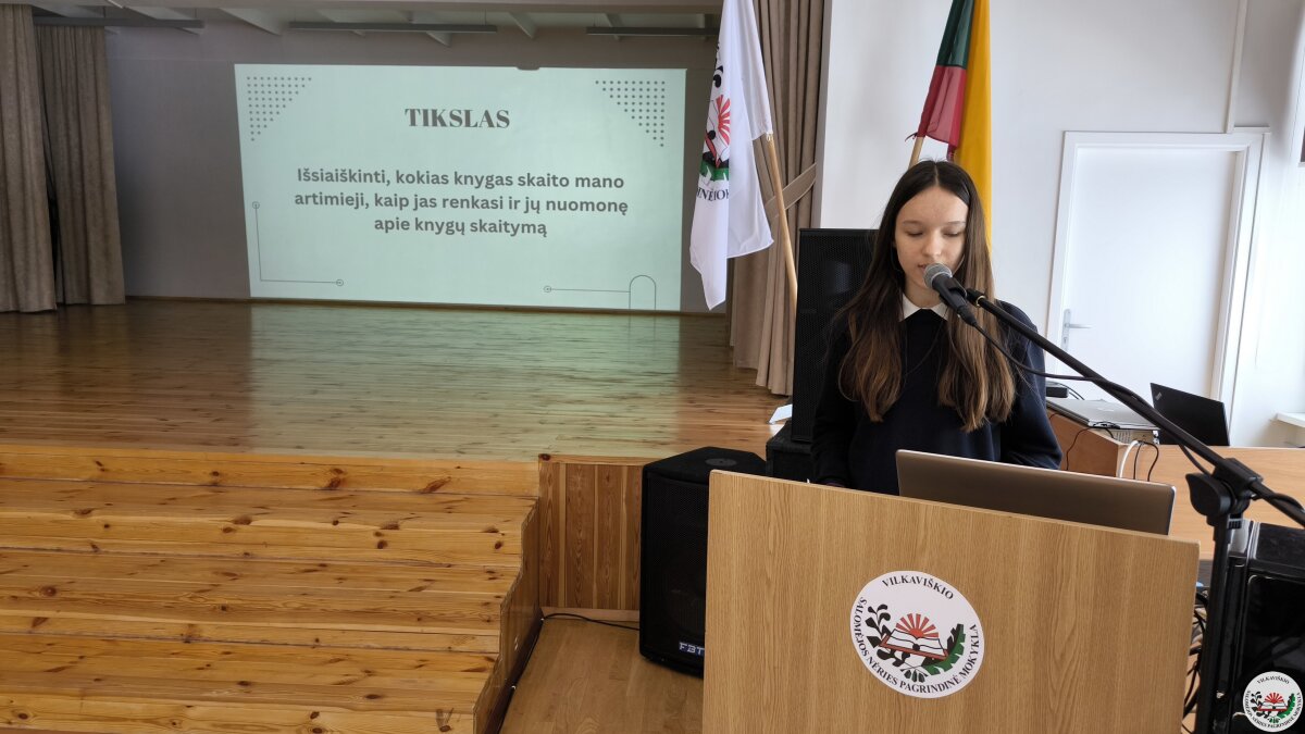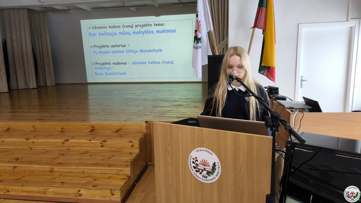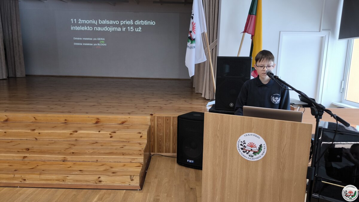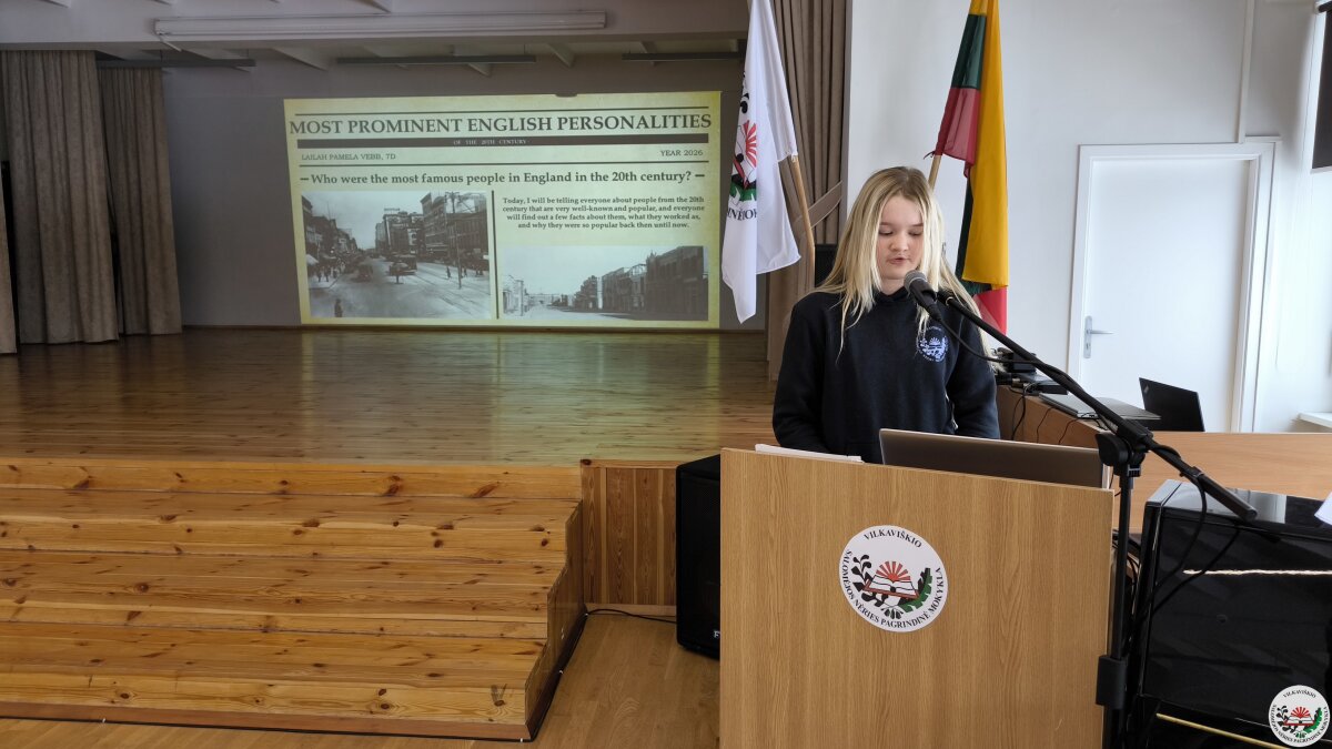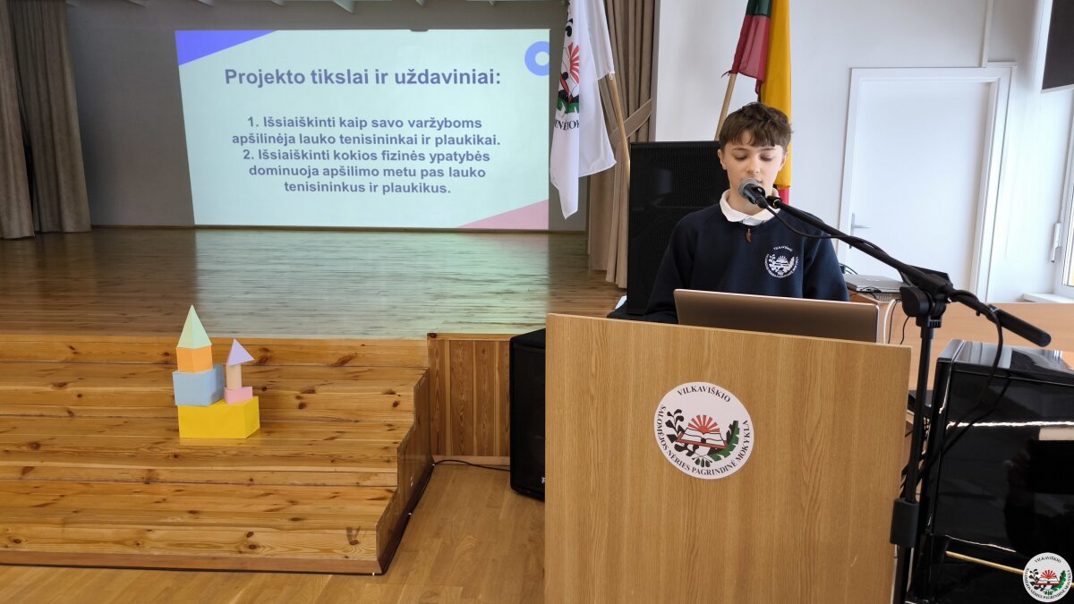Geriausių projektų autoriai savo darbus pristatė mokyklos bendruomenei. Pristatymų metu mokiniai ne tik dalijosi įgytomis žiniomis ir patirtimi, bet ir stiprino viešojo kalbėjimo įgūdžius.
