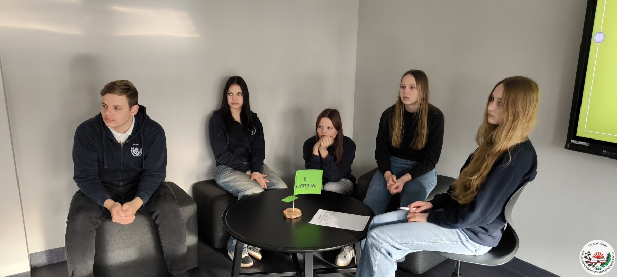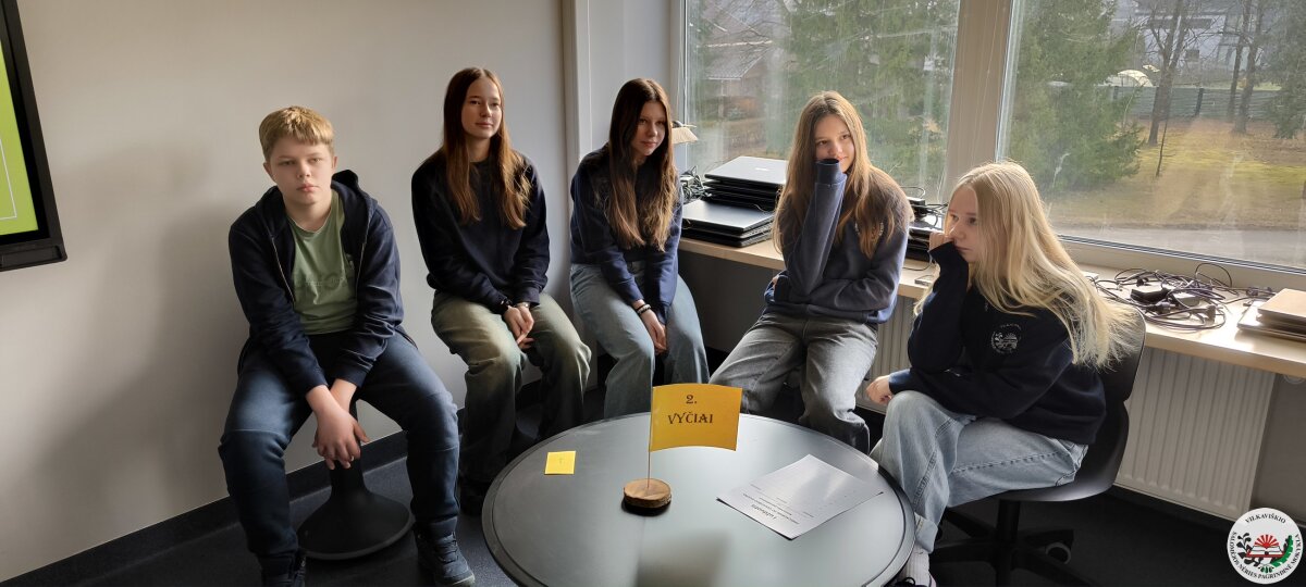 Dar vienas šventinis rajoninis renginys – istorijos protų mūšis – vyko Vilkaviškio „Ąžuolo“ progimnazijoje. Jame dalyvavo ir mūsų mokyklos jungtinė 5-8 kl. komanda: Viltė Petkevičiūtė, Raminta Stemplytė, Augustė Kinaitytė ir Mantvydas Šimanauskas. Sveikiname mokyklos mokinius, laimėjusius III vietą.