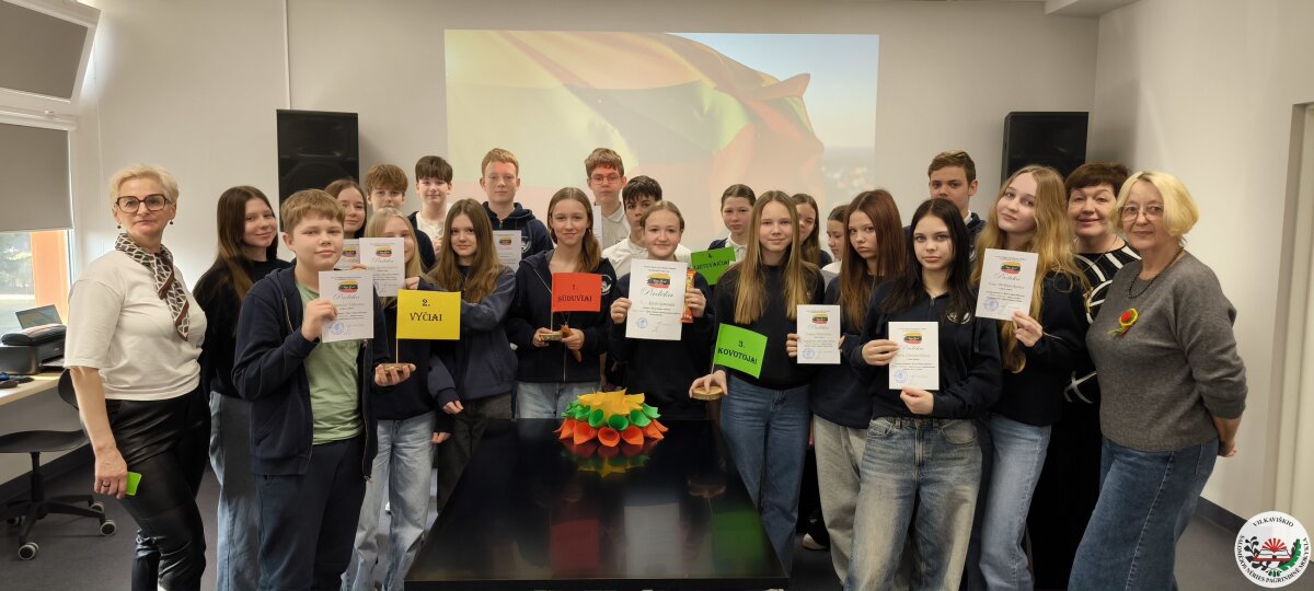 Pasitinkant Lietuvos nepriklausomybės atkūrimo dieną mokyklos 7 klasių komandos dalyvavo istorijos žinių viktorinoje „Mano Lietuva“. „Vyčių“, „Lietuvaičių“, „Jotvingių“ ir „Sūduvių“ komandos pasitikrino žinias apie Lietuvos praeitį, virtualiai pakeliavo po istorines Lietuvos vietoves, sprendė kryžiažodį ir atliko testą. Viktorinos nugalėtojais tapo 7a klasės komanda.