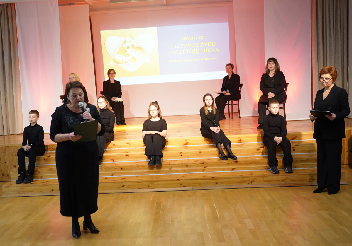 Literatūrinė – meninė kompozicija „Drąsa būti žmogumi“, skirta Pasaulio tautų teisuolių dienai paminėti, tarsi tylus ir gyvas atminties pulsas palietė kiekvieno žiūrovo širdį. Salėje tvyrojo susikaupimas, lyg laikas būtų trumpam sustojęs iš pagarbos praeičiai. Ekrane mirgėjusios filmų ištraukos atvėrė skaudžias žydų tautos istorijos žaizdas. Kiekvienas kadras bylojo apie netektį, baimę ir neišmatuojamą skausmą.