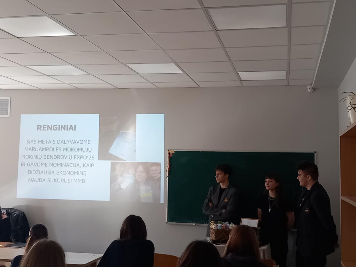 Siekdama skatinti verslumo ugdymą nuo pat mokyklos suolo, Inovacijų agentūra, bendradarbiaudama kartu su antreprenerystės ugdymo organizacija „Lietuvos Junior Achievement“, kvietė šalies mokyklas prisijungti prie praktinio verslumo ugdymo programos. Jos metu 9-12 kl. mokiniams suteikiama galimybė įgyti realios verslo kūrimo patirties, išmokti priimti svarbius sprendimus ir kartu su pedagogų-mentorių bei verslo praktikų pagalba įgyvendinti visus verslo vystymo etapus. Prie šios programos prisijungė ir buvę mūsų mokyklos mokiniai P. R. Guzevičius, V. Valatkaitė, U. Šukytė ir S. Šukaitis.
