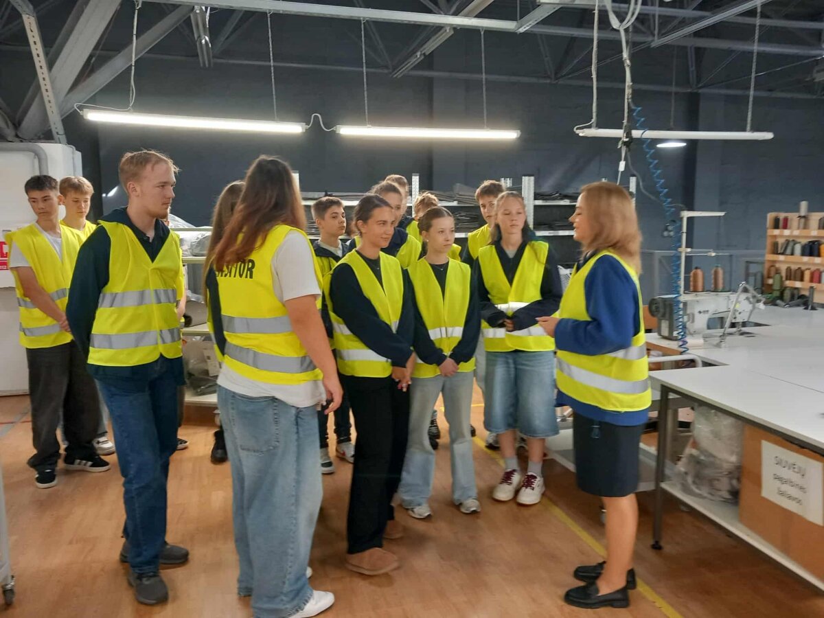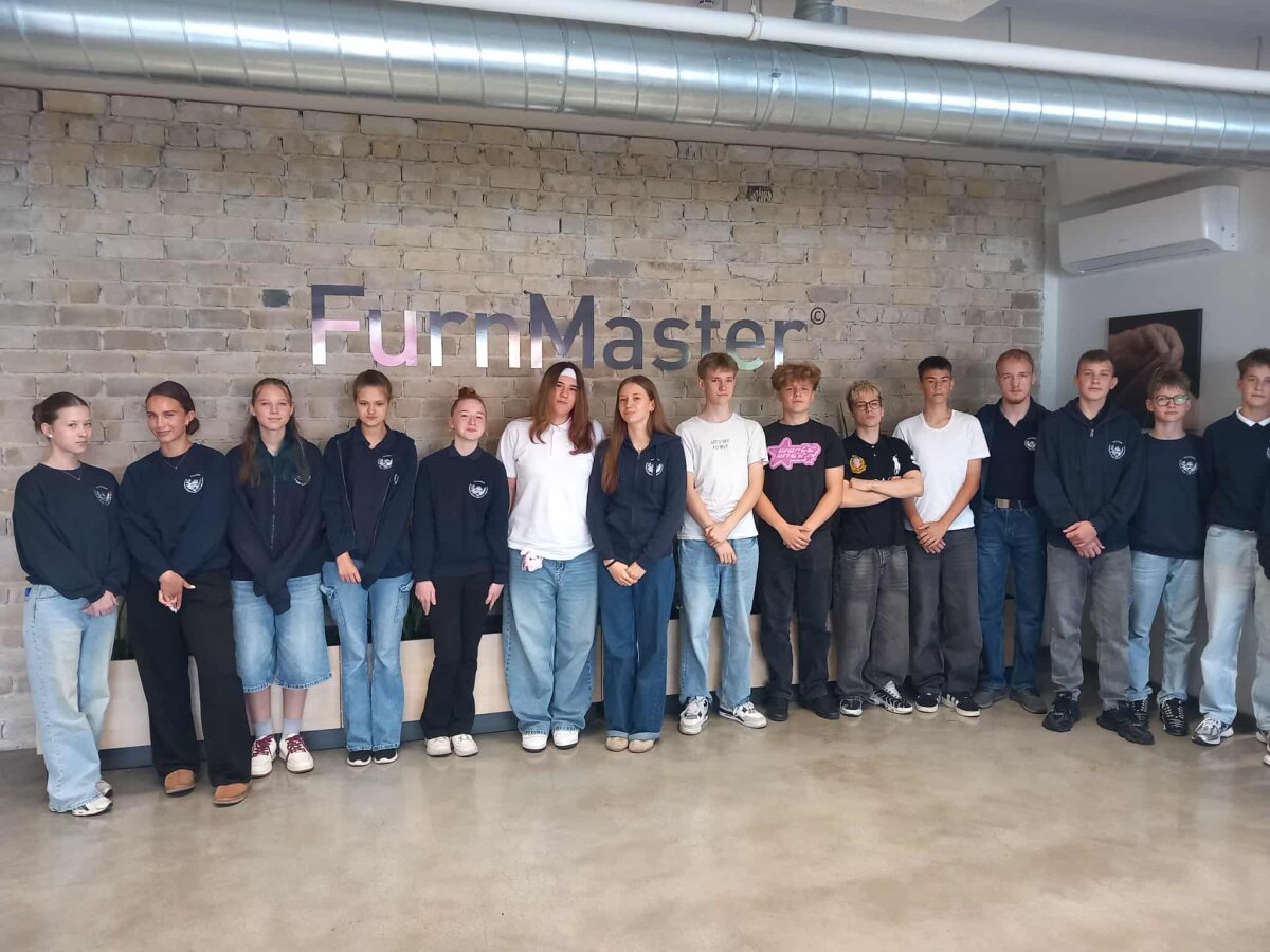 Mokinius fabrike pasitikusi darbuotoja papasakojo įmonės įkūrimo istoriją, pristatė veiklos kryptis bei gaminamą produkciją. Ekskursijos metu aštuntokai galėjo stebėti, kaip iš paprastos medienos ruošinio gimsta kėdės, traukinio baldai bei akustinės kabinos. Didelį įspūdį paliko modernios staklės ir robotizuoti įrenginiai, užtikrinantys tikslumą ir kokybę.