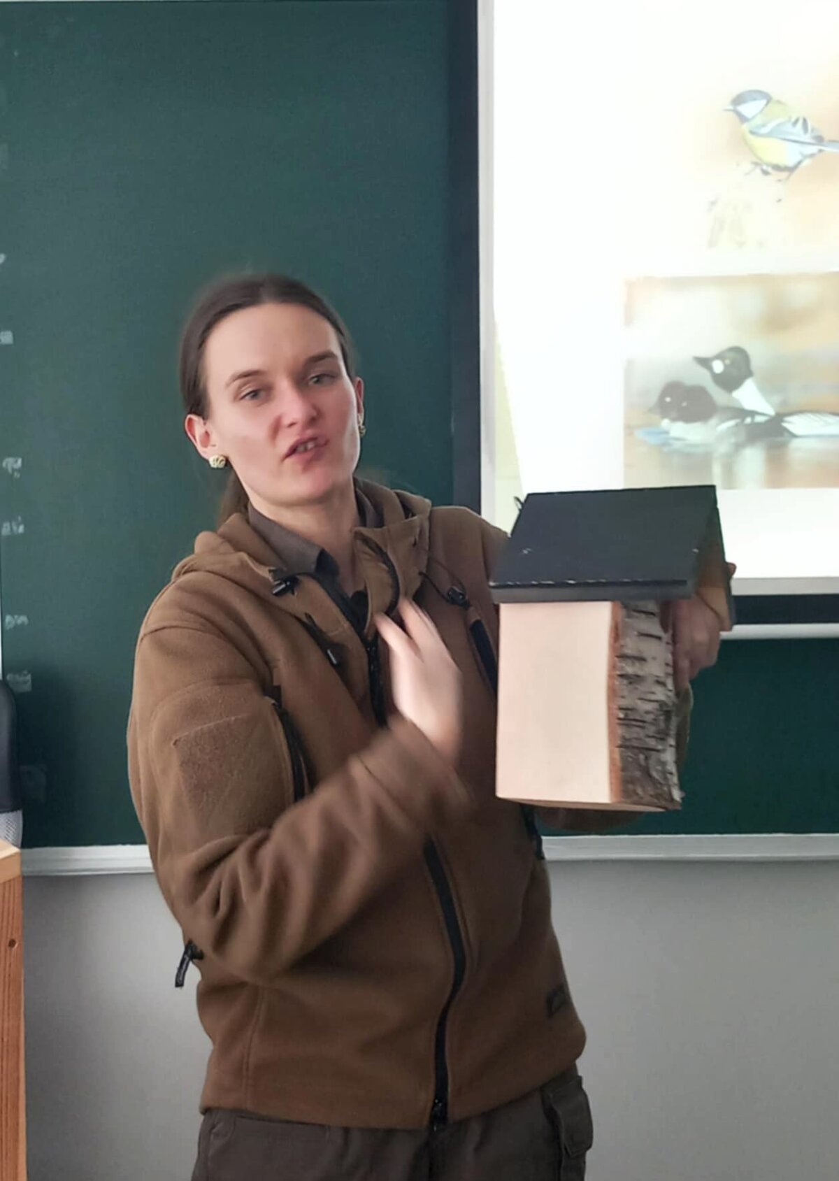 5 b klasės mokiniai dalyvavo įdomioje ir naudingoje edukacijoje ,,Nameliai sparnuočiams“, kurią vedė Vištyčio regioninio parko lankytojų centro administratorė Živilė Valaitienė. Edukacijos metu sužinojome apie paukščius, jų gyvenimą ir ypač – apie paukščių lizdus bei inkilų svarbą.